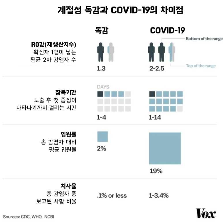 그러나, 코로나가 독감 대비 치사율이 높은 반면
