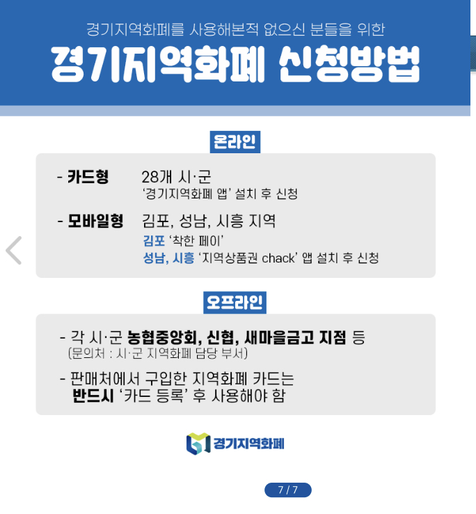▶ 경기지역화폐란? 경기도 각 시·군에서 사용할 수 있는 충전식 카드 형태의 지역화폐입니다. 경기지역화폐는 경기도민께 복지 수당을 지급하는 수단으로, 경기 지역자치단체에서 지역경제 ��