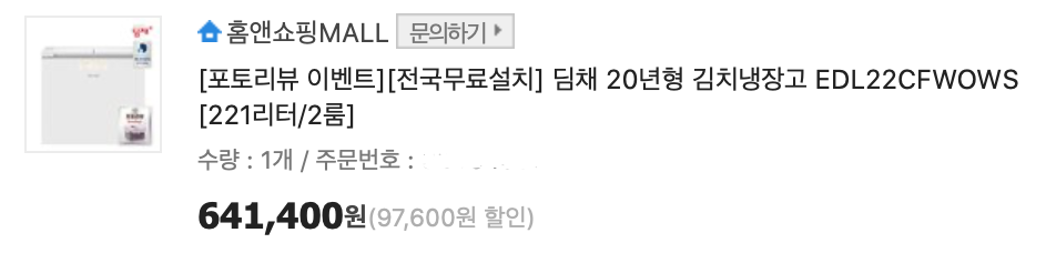 포토리뷰 이벤트 전국무료설치 딤채 20년형 김치냉장고 EDL22CFWOWS 221리터/2룸