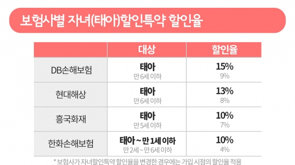 '자녀(태아)할인특약' 상품이 있는