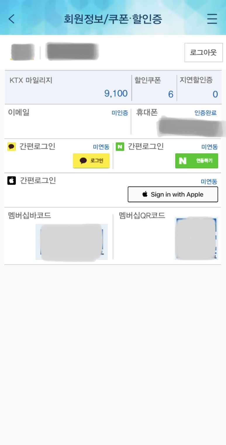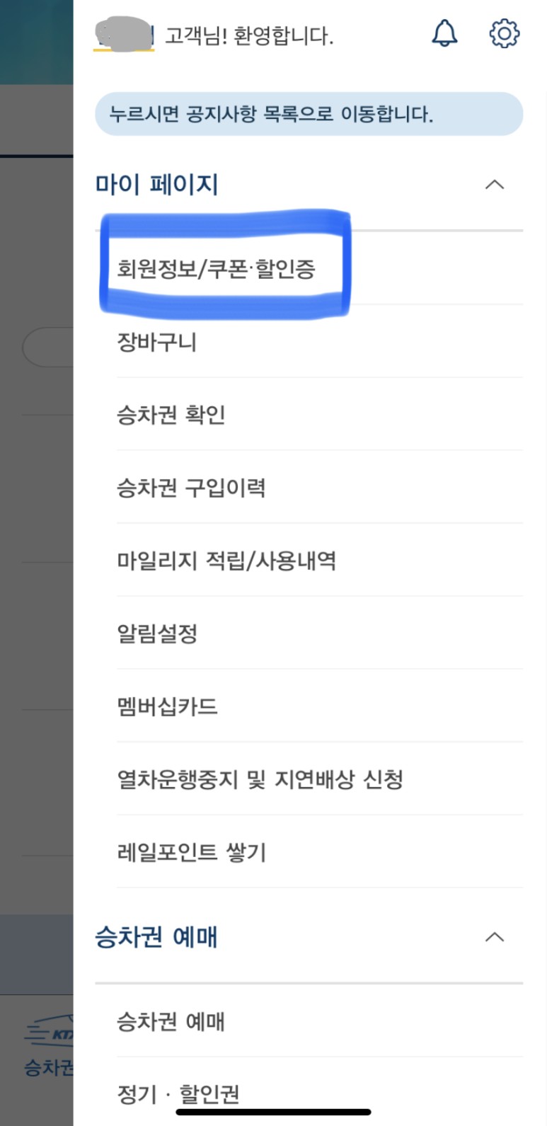 (맘편한 KTX / 코레인멤버십 10자리 필요)