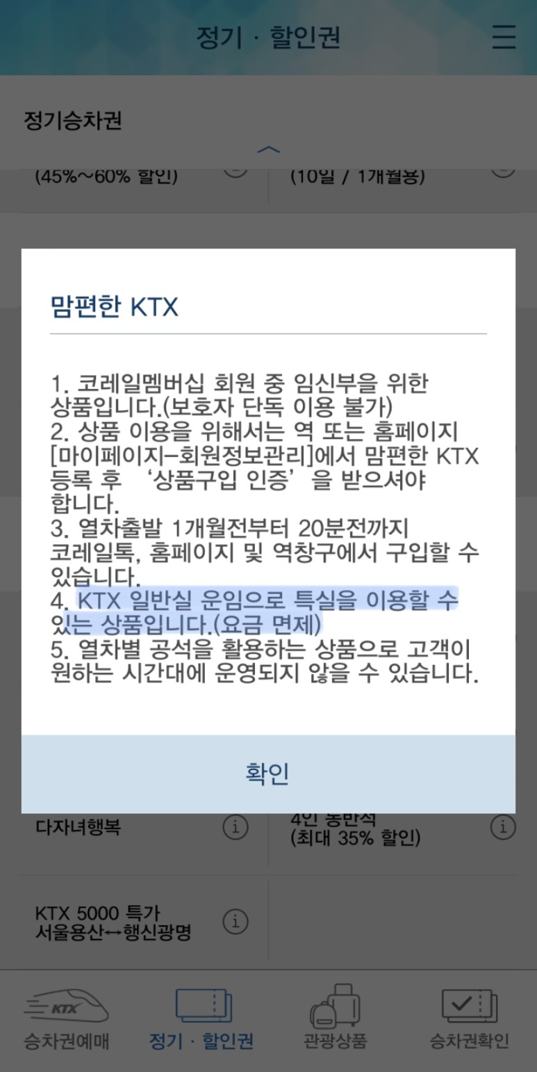 이건 맘편한KTX에 안내된 사항은 아닌데