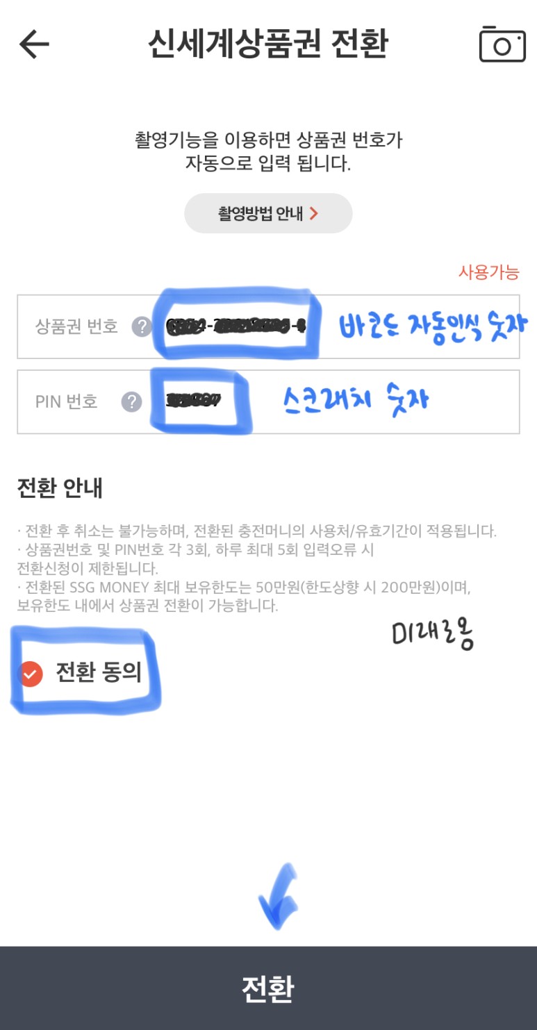 ※ 바코드 인식 후 '사용불가'라고 뜨는 상품권은