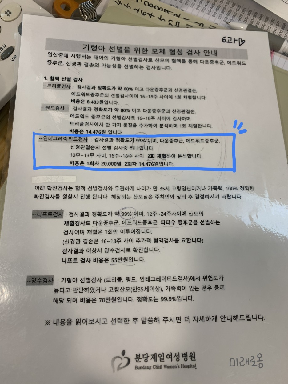 기형아 1차 혈액 검사