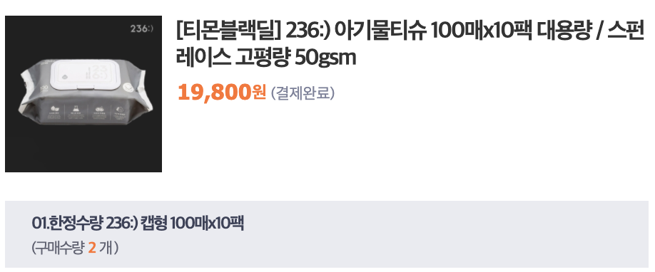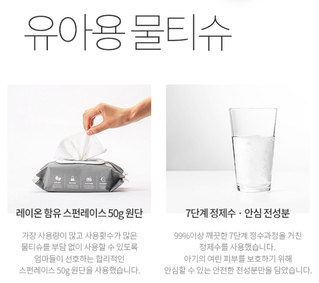 [타임커머스 티몬] [티몬블랙딜] 236:) 아기물티슈 100매x10팩 대용량 / 스펀레이스 고평량 50gsm