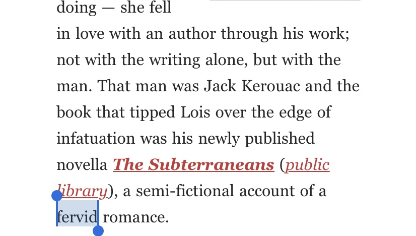 That man was Jack Kerouac and the book that tipped Lois over the edge of infatuation was his newly published novella The Subterraneans, a semi-fictional account of a fervid romance.
