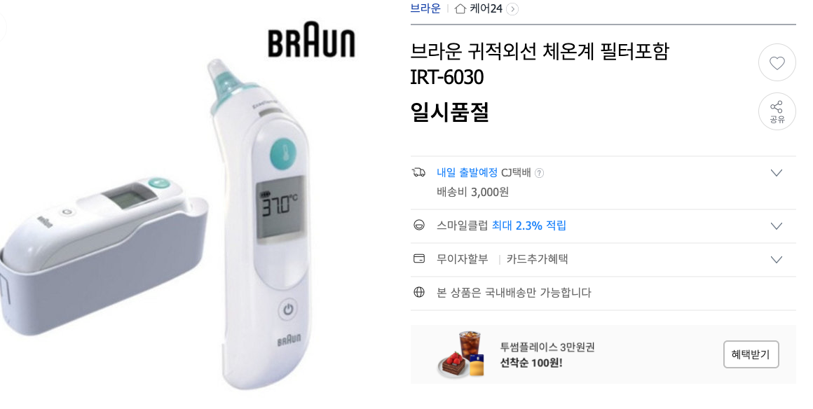 브라운 귀적외선 체온계 필터포함 IRT-6030