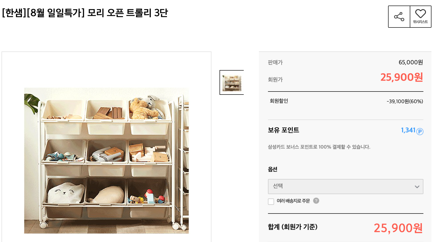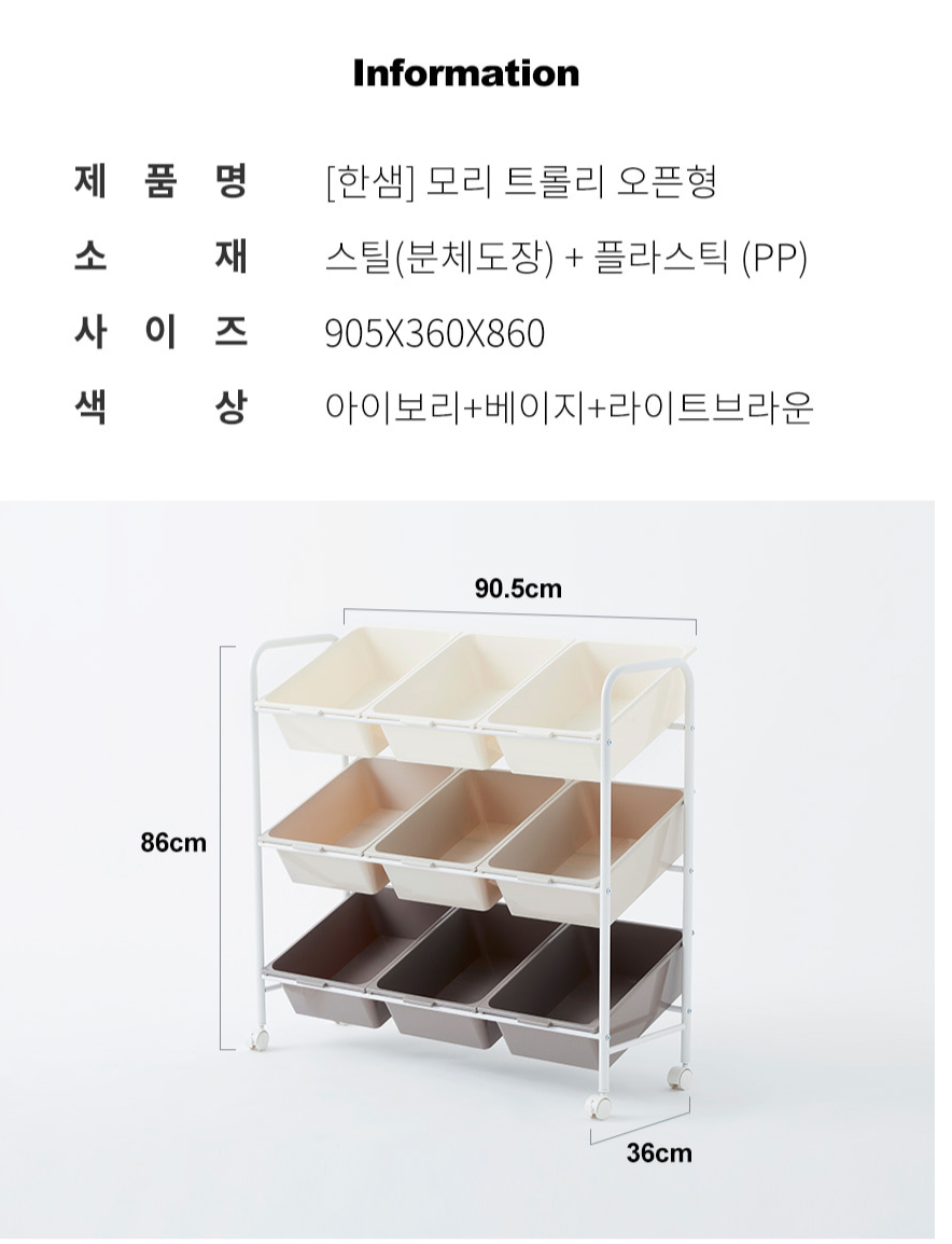 [한샘][8월 일일특가] 모리 오픈 트롤리 3단
