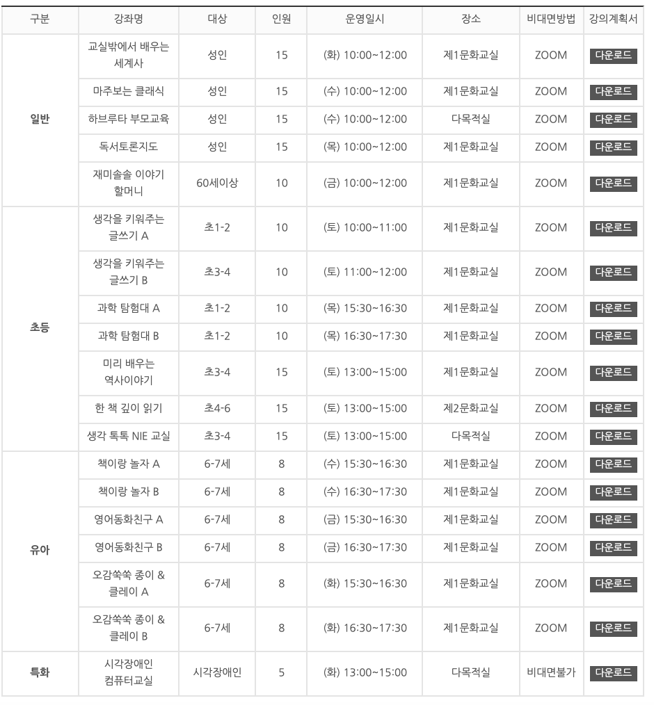 - 수강료: 무료 (비대면 온라인 수업)