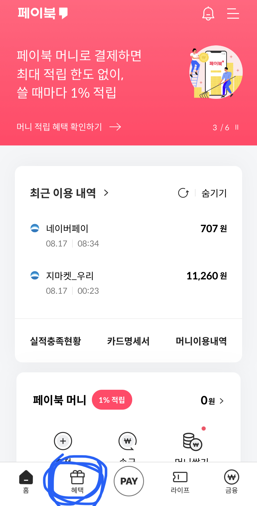 페이북 앱 하나로, 쉽고 빠른 온오프라인 결제는 기본, 맞춤형 혜택 및 일상 속 다양한 이벤트와 할인 혜택, 그리고 특별한 금융 상품까지. 새로워진 페이북을 이용해 보세요. ○ 카드 생활을