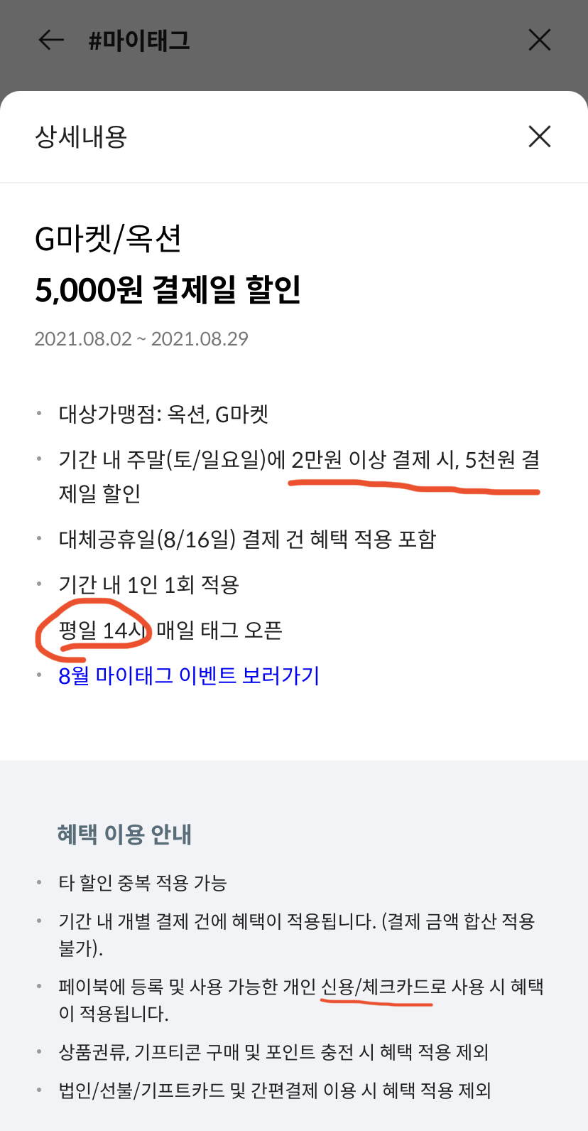(이후 주말에 2만원 이상 결제하기)