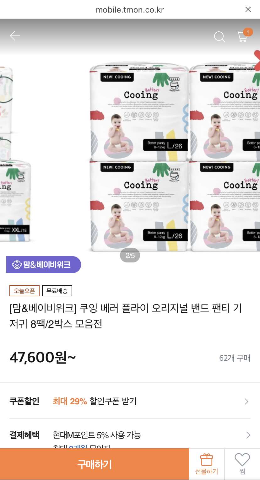 쿠잉 기저귀 핫딜/특가 (ft. 소형 116원/장)