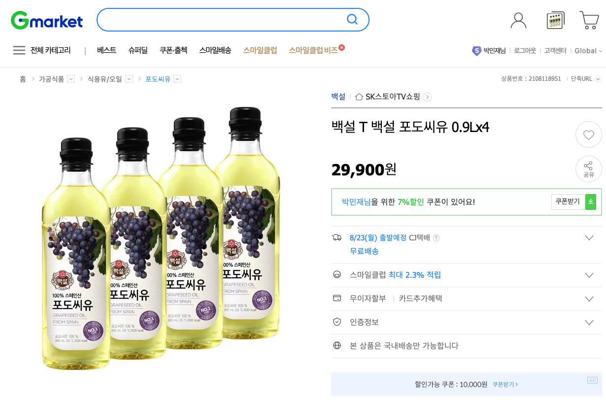 포도씨유 ₩29,900