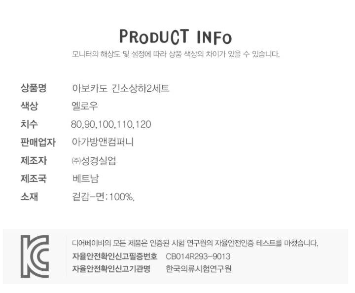 아가방 아보카도 내복세트