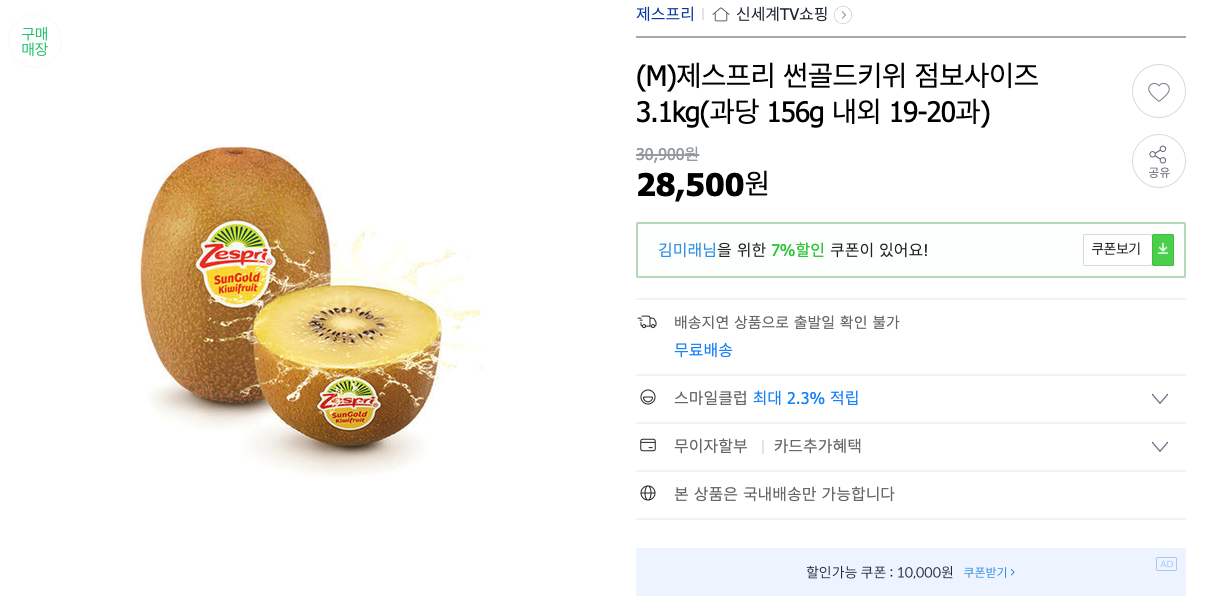 (M)제스프리 썬골드키위 점보사이즈 3.1kg(과당 156g 내외 19-20과)