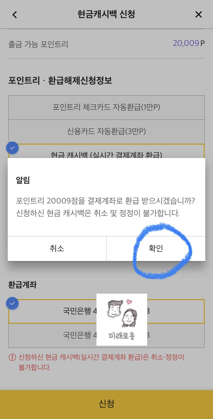4. [현금캐시백] 선택 및