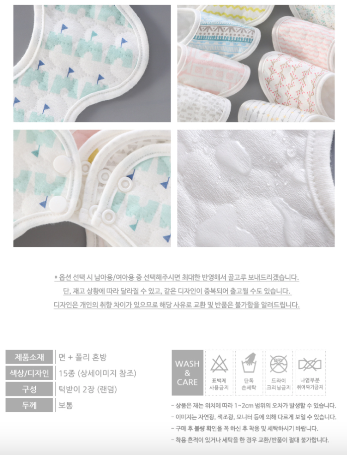 향균 / 무형광 / 순면 턱받이 판매처: 반값마켓 최종가: 개당 1,527원 * 총 11개 구매 (4장셋트 2개 + 신규가입시 턱받이 3장 추가 증정) * 배송료 3천원 별도 반값마켓 신규회원가입 EVENT! 반값마켓은