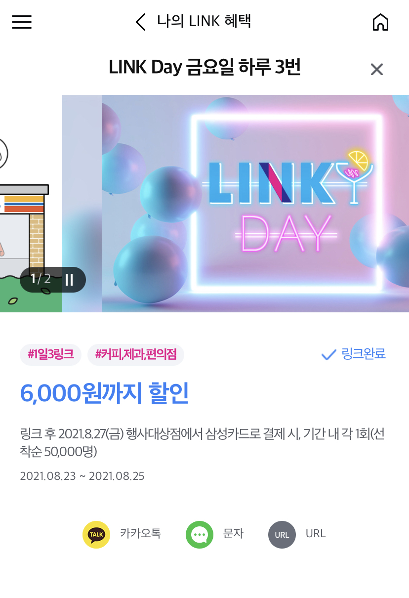 결제할 때 필수, 삼성카드 LINK 혜택 받고 계시나요? 지금 링크해 보세요~