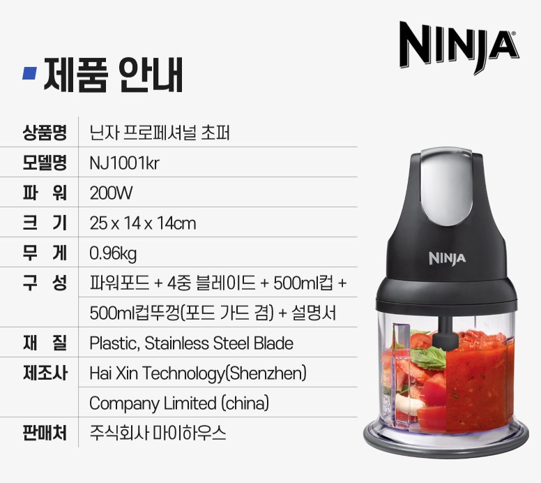 닌자 프로페셔널 초퍼 초강력 믹서기 닌자블렌더 정품