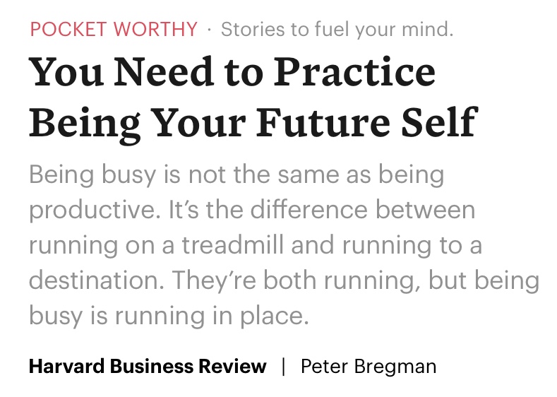 You need to practice being your future self. Being busy is not the same as being productive. It's the difference between running on a treadmill and running to a destination. They're both running, but being busy is running in place.
